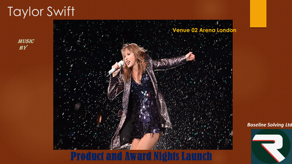 Baseline Solving Ltd Host : A new product Launch and Crowns Face of Expression Winners . Venue:Stratford Stadium Date in year 2025 - Live Music Artistes : Madonna, JLO, Rihanna. Beyonce,Taylor Swift , Nicki Minaj, Dua Lipa , Ed Sheeran (Plus Award Night show by Madonna) - Show Presenters Anthony Mc Partin and Declan Donnelly